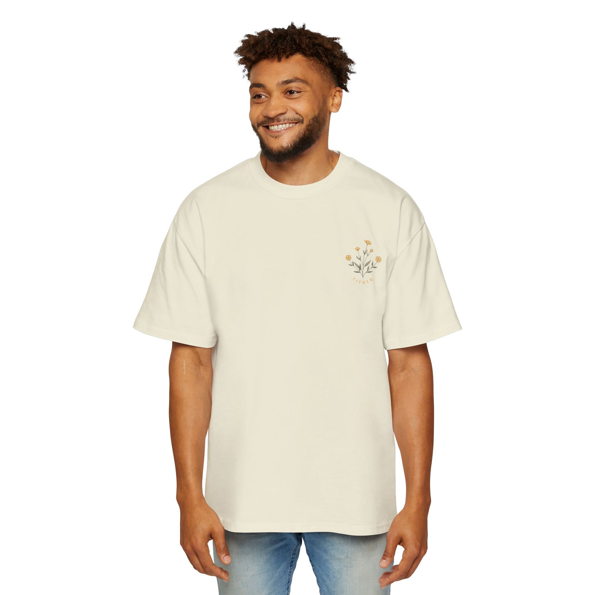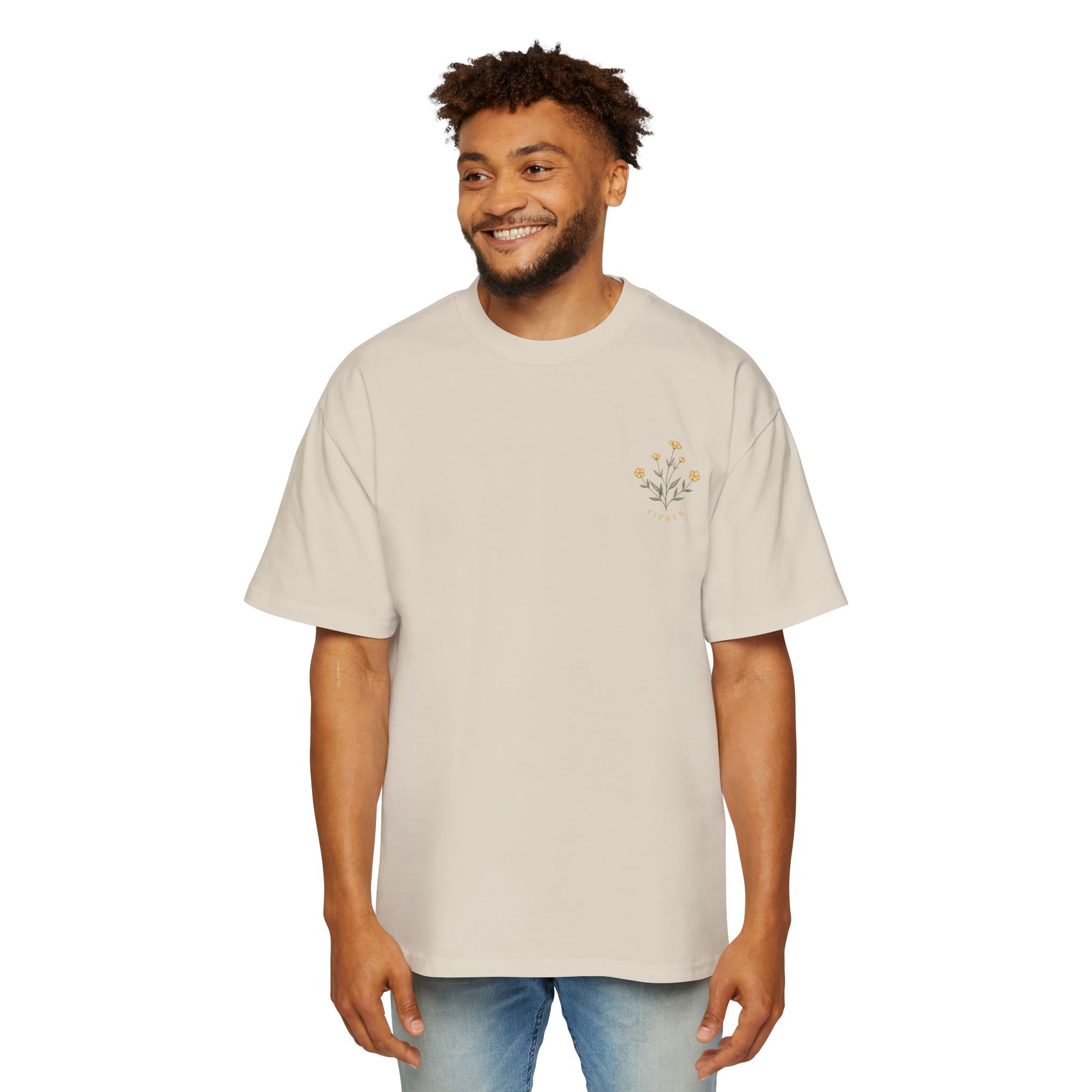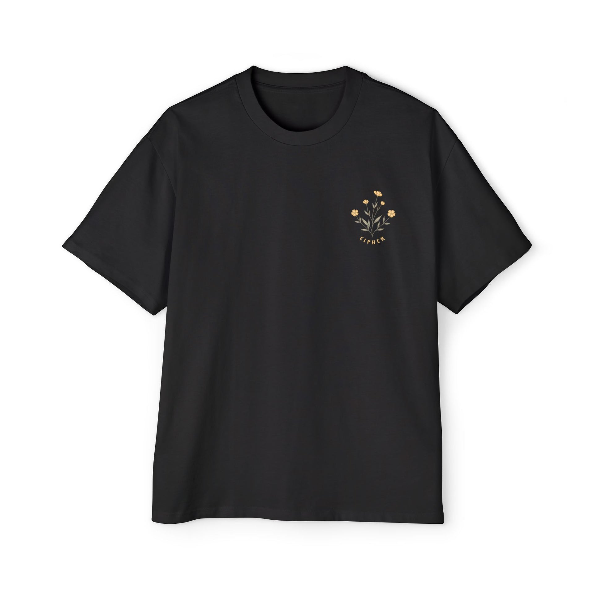 A relaxed, oversized cotton tee with a quiet, hand-drawn floral accent that sits near the left chest. The midweight fabric drapes with a lived-in feel while the dropped shoulders and roomy cut create an easygoing silhouette for long walks, slow mornings, or layering under a worn jacket. Thoughtful construction — shoulder tape, double-stitched hems, and a sewn-in label — keeps this tee looking and feeling sturdy wash after wash. Wear it with rolled sleeves and worn jeans for a calm, lived-in look that feels personal and understated.